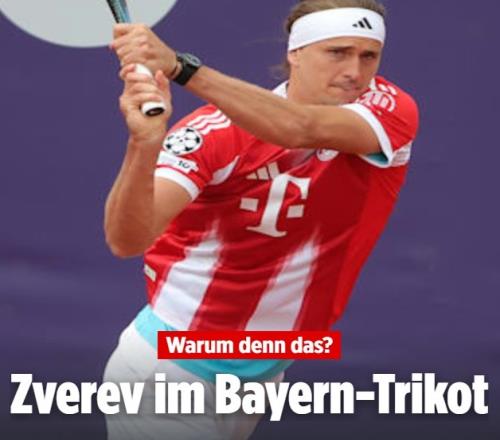 體育播報4月17日宣 世界排名第三的ATP網球選手、拜仁球迷亞歷山大·茲維列夫在今日出戰慕尼黑公開賽時,身穿了一件奧利塞的拜仁球衣。