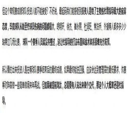 對于廣東男籃的成績,“海jun的藍”表示投資人肯定是有要求的,目前可以說是給了主教練杜鋒指導最大的寬容態度。投資人是在等球隊賽季結束后的最終成績,如果最終能進四強,應該會達到管理層的最低要求,休賽季對陣容做一些簡單微調來年再戰。但如果被提前淘汰,總需要有人站出來做個交代,那這個人大概率還是杜指導。“海jun的藍”雖然說的非常隱晦,但意思卻非常明顯,那就是廣東男籃如果能夠在季后賽中打進四強還好說,如果打不進四強的話,杜鋒就有下課的可能了。